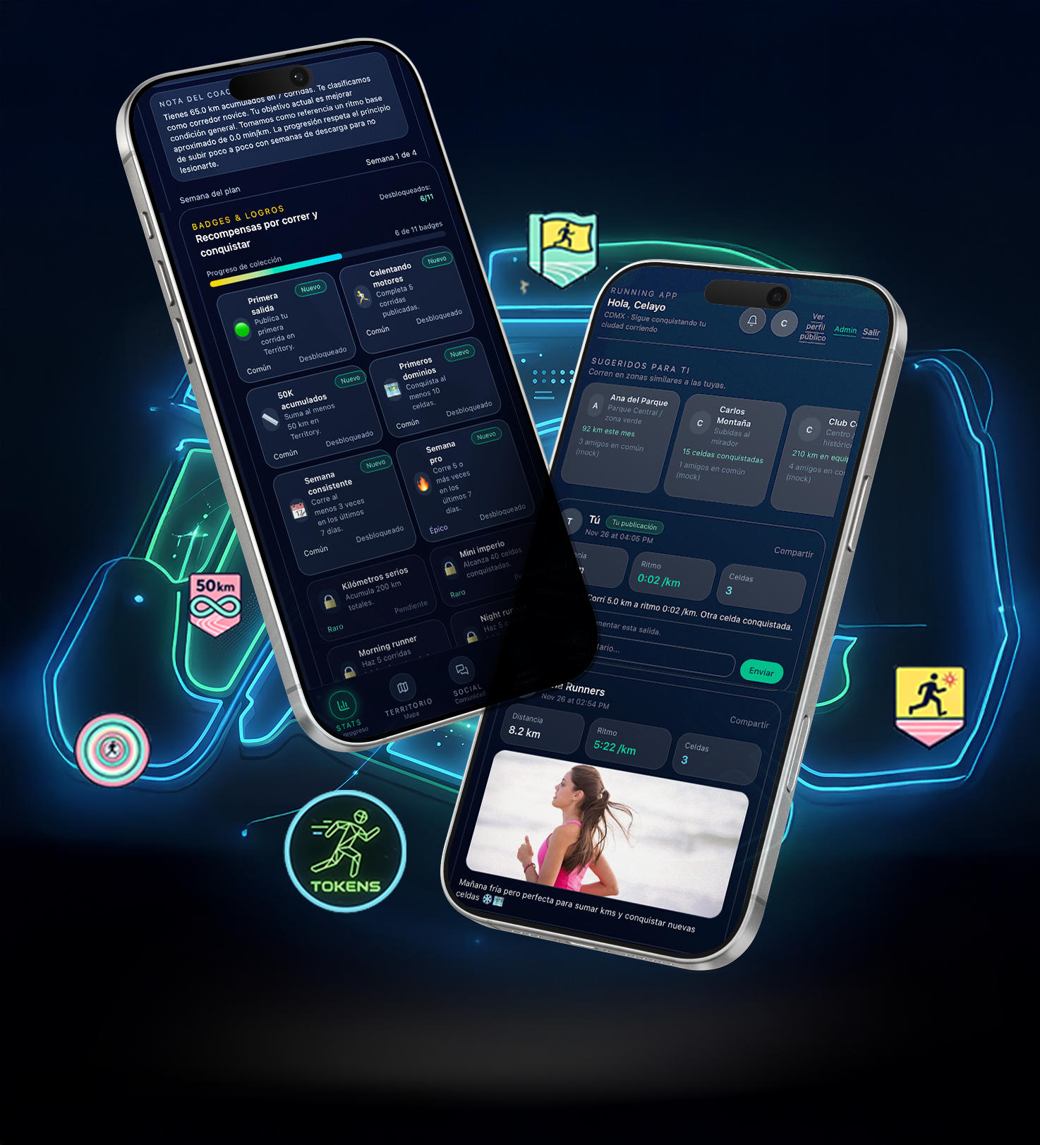 Cada zona por la que corres te da puntos para dominar un territorio para ti o tu club.